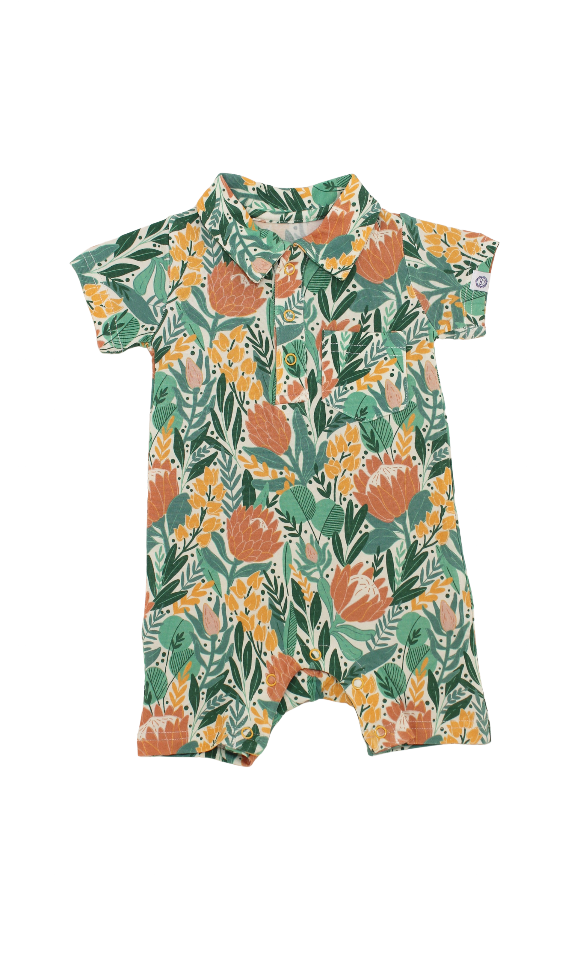 - Snap button-up collar and snaps along inseam for easy diaper changes